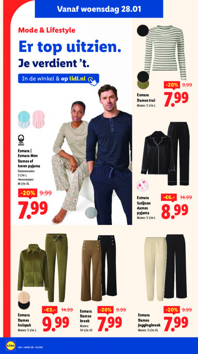 Deze tekst wordt automatisch gegenereerd, dus deze kan fouten bevatten.>. Mode & Lifestyle à = So 1 Je verdient ’t | LIE TON Creer e Esmara 8 Damestrui Lo ©: Maten: S t/mL al e Esmara | J Dames of Esmara Men heren pyjama Dam: St/mL y M tm XL & ET > Esmara Satijnen dames Maten: S t/mL yjama 9 99 799 y mma: LL. Esmara Esmara |-20% | 9:99) Esmara Dames broek Dames Dames huispak Maten: S t/m L 999 u fn 42 799 joggingbroek Maten: S t/m XL 799