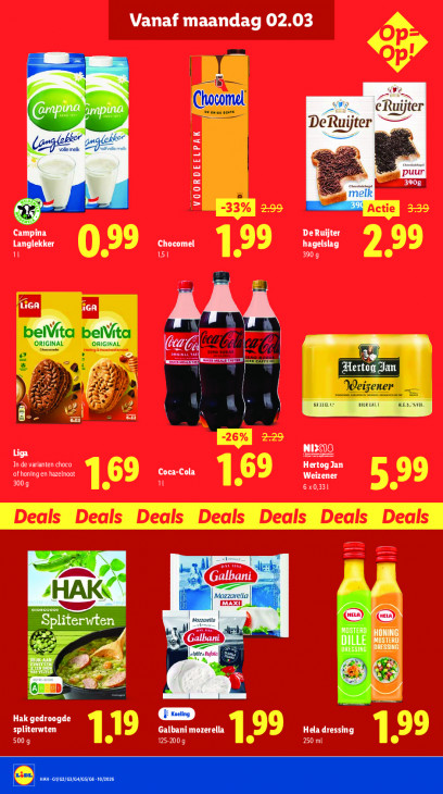 Deze tekst wordt automatisch gegenereerd, dus deze kan fouten bevatten.Vanaf maandag 02.03 | Ÿ | mn Cocomal dr pe = u AU puur 390 ke VOORDEELPAK Campina DeRuïjter Chocomel Langlekker hagelslag ul Lo 3909 LIGA Ko} ER 41 bai} ib Cd = % a: 4% AN > 4 ze 2 Weizener pe D J B>- ET Liga gn In de varianten choco H Een ofhoning en hazelnoot Coca-Cola Gd 3009 1 6 x0,331 == x LIED œ ©) Sn == Dr FT LINE I LL DRESSING Nl 508 Hak gedroogde spliterwten Galbani mozerella Hela dressing 5009 125-200 g 250 ml ER