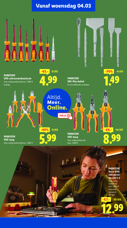 Deze tekst wordt automatisch gegenereerd, dus deze kan fouten bevatten.\ PARKSIDE cs Be EDA + VDE-schroevendraaierset PARKSIDE Voor veilig werken bij max. 1.000 V 99 SDS-Plus beitel 49 EPA In verschillende varianten ad = FES — — [410% EE PARKSIDE PARKSIDE VDE-tang VDE-tang 99 Voor veilig werken bij Voor veilig werken bij max. 1.000 V LTSETTT 9 99 Ds La F4 N Bon Accu-VDE- =» N schroeven- ier 4 V et OT) Dita (M Stationair 4 Er toerental: " Mi Be a fen: — m | LE rt