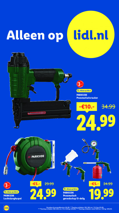 Deze tekst wordt automatisch gegenereerd, dus deze kan fouten bevatten.Alleen op ein en [ee ni D I = | x PARKSIDE 2 Pneumatischetacker Pee En > er RE 99 ze Eg ni Le à \ cad @ | 711 PARKSIDE 1 % omm ÿ ñ da _. LE N PARKSIDE PARKSIDE EL Pneumatisch Luchtslanghaspel gereedschap 13-delig LA ET laard verzendkosten: €4,99. **Toeslag artikelen 120-180 cm/ 31,5 kg €: len 180-240 em / 31,5-50 kg: €29,99. ***Toeslag artikelen vanaf 240 em D 18 ko: 649.99. Kd
