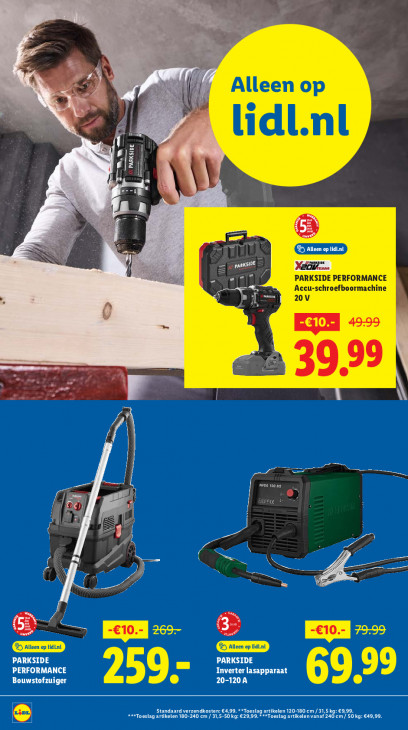Deze tekst wordt automatisch gegenereerd, dus deze kan fouten bevatten.in dl € Alleen op fü >? lidi.nl A il IE À | @ Alleen op lidLnl e FUEL mensa 5 = PARKSIDE PERFORMANCE Accu-schroefboormachine En 20V 39,99 1 BE En ET | ris « PR) A AS = 4 y| an ne L 00. io leid © D Alleen op PARKSIDE PARKSIDE PERFORMANCE Inverter lasapparaat EL 20-120 A Bouwstofzuiger 259 tandaard verzendkosten: €4,99. **Toeslag artikelen 120-180 cm / 31,5 **+Toeslag artikelen 180-240 cm / 31,5-50 kg: AE TEN