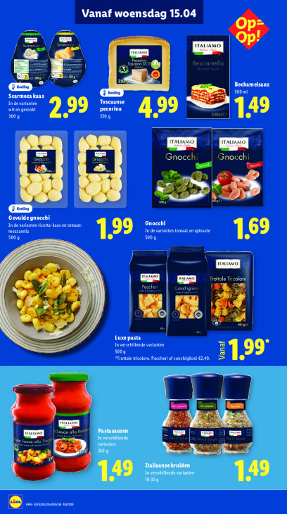 Deze tekst wordt automatisch gegenereerd, dus deze kan fouten bevatten.Vanaf woensdag 15.04 Æ Scanor pn arm De 1 G @® ET] ET EN e\ Bechamelsaus je EAN Scarmoza kaas | Koeting Toscaanse In de varianten wit en gerookt pecorino 3009 2.99 2509 493 149 EAN Em ra Gnocch Gnocchi CS CZ grid «8... » 7 A LA En Gevulde gnocchi In de varianten ricotta-kaas en tomaat- Gnocchi mozzarella 99 In de varianten tomaat en spinazie 5009 El 169 ITALI Mo Ÿ Trottole Tricolore Lee) Lee y Cenchiglion = Paccher 3) % i € A RS sh 5 En ze El = Luxe pasta In verschillende varianten en 500g *Trottole tricolore. Paccheri of conchiglioni €2.49. A EL m [1 f Tr dene ® Pastasauzen Im Ee eh | In verschillende Een: varianten Le] | Re À 350 9 Italiaansekruiden In verschillende varianten ET 149 16-359 an