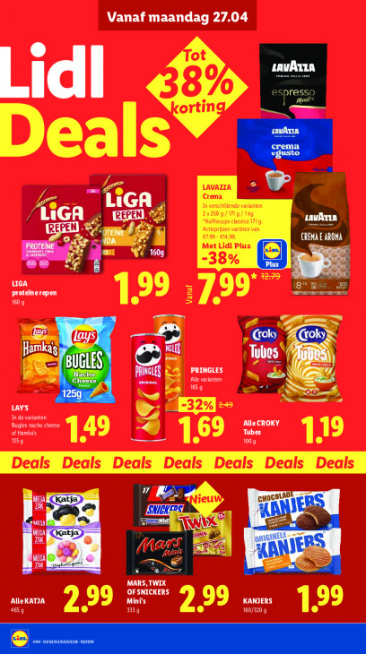 Deze tekst wordt automatisch gegenereerd, dus deze kan fouten bevatten.Vanaf maandag 27.04 ot di 89 orting Deals 2 LAVAZZA In Crema chillende varianten IGA , KE Ke: REPEN € | et Lidl Plus €) À. 4 a % LIGA 160 g proteïnerepen 99 É y Æ LS (TD Hamkas El É TV, Alle varianten PRINGLES 4 el 1659 Be Raad = To > LAY'S In de varianten Alle CROKY of Hamka's Bugles nacho cheese 2 Tubes 125g 149 Te 100g AE (la) N KNieu oh MEGA DE ZAK CL enn ed MARS,TWIX u; RUE AlleKATJA LUS KANJERS EN 299 3339 EL 180/320 9 199