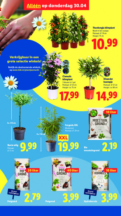 Deze tekst wordt automatisch gegenereerd, dus deze kan fouten bevatten.Alléén op donderdag 30.04 14 N A Thunbergia klimplant Bloeft in het voorjaar Potmaat: Z 19 cm Ä SAS Hoogte: 75 cm a a + 4 À Eds 10.99 Verkrijgbaar in een z TX À grote selectie winkels! = x Fa re Bekijk de deelnemende winkels À: de. É à) ENNE AI SE Pi Clematis N S klimplant Oleander 3 kleuren in 1 pot boompje Ro Potmaat: 23cm Potmaat: 21 cm Hoogte: ca. 75 cm Hoogte: ca. 80 cm è ie 1799 D: 499 = Mi ñ (Er L MOESTUIN GROND ane F Jl XXL X... sad Er ww Ken. * ZEE ded = POT« DE GRON EK ORRI GROND at ei aa FF IT Verkrijgbaar CPR
