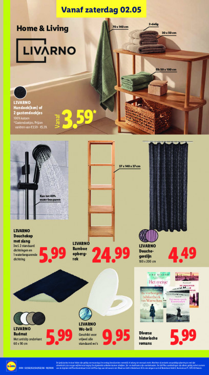 Deze tekst wordt automatisch gegenereerd, dus deze kan fouten bevatten.Vanaf zaterdag 02.05 2-delig 70x140cm Home & Living 30x50cm sun [Lıvarno | Elk50x100em = em LE an = : Fa) Ko A; Sa. en ragt es LS + 37x140x37cm = l Kan tot 40% = waterbesparen = LIVARNO Douchekop tel [N met slang LIVARNO Incl.2 standaard. Bamboe LIVARNO dichtringen en Douche- 1 waterbesparende opberg- gordijn dichtring rek 180 x 200 cm Jins on Ds uni af pl C® LIVARNO LIVARNO We-bril Diverse Badmat Geschikt voor Met antislip onderkant vrijwel alle historische 60 x 90 cm standaard wc's. romans n none re ht danae ij ervoer begrij Dealgebeede rel de tr cn nn ge ping (tree DEEE CET TC ELLES EN CEE Fat van lin Nedeland ggd en