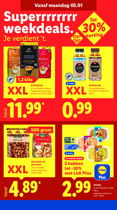 Deze tekst wordt automatisch gegenereerd, dus deze kan fouten bevatten.Vanaf maandag 05.01 Superrrrrrrr weekdeals. mn à N #7 um (KAL, AAN AN AS AR ROOD / | aan | 6 ö mL ll La Ni EN di NE RESTANT CPAS Es E [A YU A | ar 2 up MG \ 2 V4 es Alle combinaties mogelijk Salades In verschillende varianten Vanprijzen variëren van 300 9 €1.67 - €2.99.