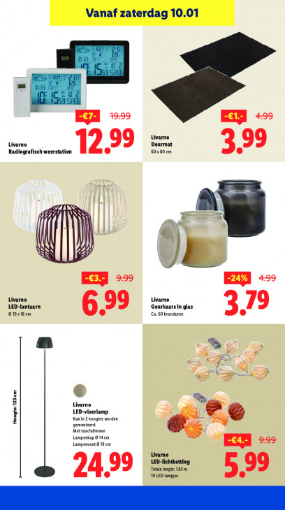 Deze tekst wordt automatisch gegenereerd, dus deze kan fouten bevatten."an Ka °° EE -= Livarno Livarno Deurmat 99 Radiografisch weerstation 12. 60 x 80 cm | ZINN ÍN N N 70 N Ca | | 2 AL | | | | N g | EX = EA + Livarno Livarno LED-lantaarn 99 Geurkaarsin glas 019x18 em Ca. 60 branduren 3.79 am & Ÿ £ R à S ze = 4 ET e Livarno LED-vloerlamp À Hoogte: 123 cm Kanin 2 hoogtes worden gemonteerd Met touchdimmer Lampenkap 9 14 em Lampenvoet 9 19 em Ee» Livamo LED-lichtketting Totale lengte: 1,65 m 99 24,99 10 LED-lampjes