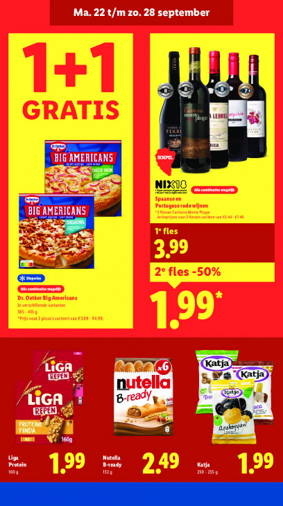 Deze tekst wordt automatisch gegenereerd, dus deze kan fouten bevatten.Ma. 22 t/m zo. 28 september Fi Il a É À Ben ä BIG N5 creme Chlana id NIKO Bernaer BIG AMERICANS el Fn Alle combinaties mogelijk 8 ss LE a utella „red xt /UG Fo lo LL EN 9 mé Ld ee Liga Nutella aut B-ready Katja 160g 132g 250-2559