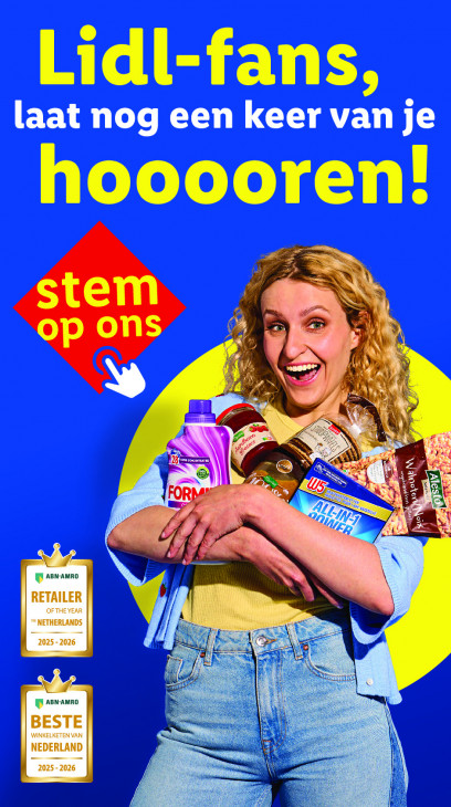 Deze tekst wordt automatisch gegenereerd, dus deze kan fouten bevatten.Lidl-fans, hooooren! PAS 1 u Es N gen NO Lire N RT I | FOR pn D. l IQ Aan-amRo | RETAILER OFTHEYEAR I “NETHERLANDS 2025-2026 x Gies WP aam-amro Ty | WINKELKETEN VAN BESTE en NEDERLAND ss 2025-2026