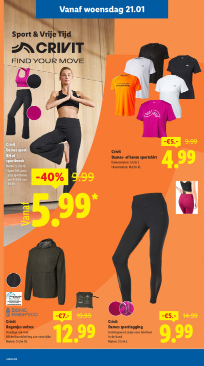 Deze tekst wordt automatisch gegenereerd, dus deze kan fouten bevatten.a Vanaf rn 21.01 ij | Sport & Vrije Tijd JACRIVIT FIND MOVE 4 EM à 6: FITNESS PR un Crivit Dames- of heren sportshirt Damesmaten: S t/m L Herenmaten: M t/m XL Ä D alge Es gee zr BANN eco Crivit Crivit Regenjas unisex Dames sportlegging Handige zakmet klittenbandsluiting aan voorzijde in de band Geïntegreerd zakje voor telefoon Maten: S t/m XL Maten: S t/m L LAnDELDK