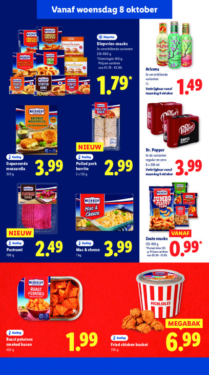 Deze tekst wordt automatisch gegenereerd, dus deze kan fouten bevatten.Vanaf woensdag 8 oktober vase 8 E a En RE = Diepvries-snacks Ari Ef e= In verschillende varianten PEN) ED in] U NE Prijzen variören a Se =S van €1.79- €5,99. & Lot er, Arizona BIC: er In verschillende varianten STUFFED STE il Verkrijgbaar vanaf 49 1.79 maandag 6 oktober (TT BREADE) 6 pa niin G (24 zero == Ei NIEUW Dr. Pepper In de varianten regular en zero a5 Pulled pork 6x 330 ml mozzarella burrito LE) Verkrijgbaar vanaf 3509 ET 2x1259 maandag 6 oktober 3,99 en ES nel lie (Gi: pull KON EZ UE (A TED SNN Cheese, BA €: = Rio a VANAF Zoute snacks 125-450 g = Mac & cheese Pretzel bites 125 249 = 2 99 van €0.99- €199, 9.Prijzen variëren 0,9 LUN 119 Zi Lu) * POTATOES Ill #ICHLIDLES & Ea & U 8 Fr ME GABAK ii 722 É un Roast potatoes smoked bacon LE) ACTES EL 4509 7509