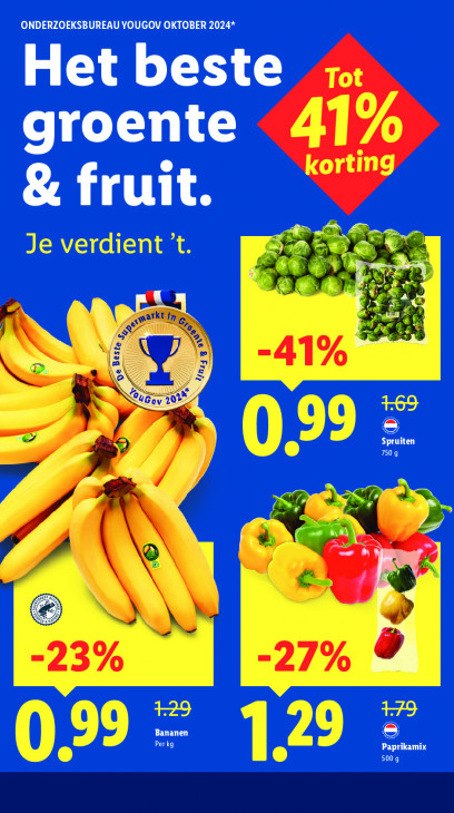 Deze tekst wordt automatisch gegenereerd, dus deze kan fouten bevatten.ONDERZOEKSBUREAU YOUGOV OKTOBER 2024: Het beste + groente 41% korting & fruit Je verdient ’t 5 ST 10 | -41% 8 99 :- Spr = Js pe ; 23% -27% LE = 5 TES à A