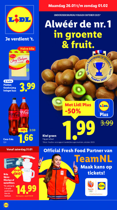 Deze tekst wordt automatisch gegenereerd, dus deze kan fouten bevatten.Maandag 26.01 t/m zondag 01.02 ONDERZOEKSBUREAU YOUGOV OKTOBER 2025: Alwéér de nr. Je verdient ’t in groente & fruit. Halve kilo XL wd Rn mark BF ë + = @ Gov 1 Plakken Goudse jong Te ET en | Met Lidl Plus KIN -50% od EJ ESA := Kiwi groen DI schaal ax Gm Cola . 166 rapport landelijke super Se Vanaf zaterdag 31.01 Official Fresh Food Partner van En #BRITA TeamNL DE ak kans op eg N Ma 7 Brita Water- ea > tickets! filterkan of Kei m Pe ÿ de 114 Tr 9 inaf €19.99° ‚Adviesprijs: === Ss