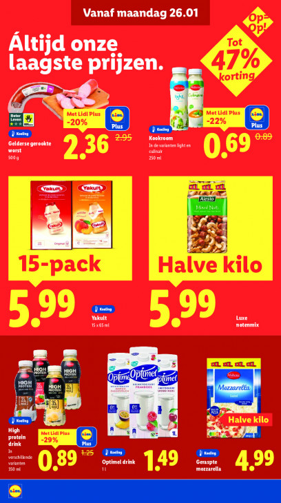 Deze tekst wordt automatisch gegenereerd, dus deze kan fouten bevatten.Vanaf maandag 26.01 Áltijd onze ste prijzen. À 1 ne Ss et (Te Kookroom LE Gelderse gerookte In de varianten light en culinair 500g 250 ml ee Sr CD XL ED me a8 ml Er a5 Yakult Luxe 15 x65 ml notenmix = u EL, al aL, AL, Zu al aal àl LE pe $ protein High 3 LE Le, drink In varianten verschillende Optimel drink Geraspte 350 ml il mozzarella