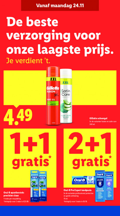 Deze tekst wordt automatisch gegenereerd, dus deze kan fouten bevatten.Vanaf maandag 24.11 De beste verzorging voor onze laagste prijs. a XXL XXL Gillette GEL] DX SHAVE GEL sim | in zn | à = ER sano In de varianten fusion en satin care — 240ml Oral-B Pro Expert tandpasta [EIN 2 TC TEL EI In de varianten professsional protection precision clean BNN PEEN it 75 ml “Actieprijs voor 2 stuks is €23.99. “Actieprijs voor 3stuks is €9,78.