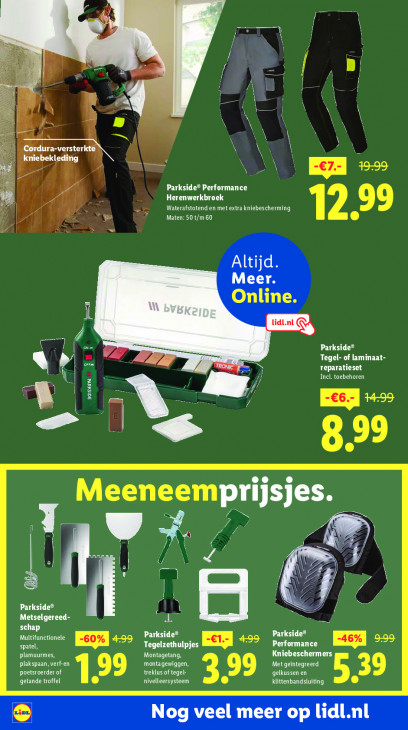 Deze tekst wordt automatisch gegenereerd, dus deze kan fouten bevatten.4 linn 7 [J 3 L À LS LE ) cr Parkside® Performance Herenwerkbroek ne EL Waterafstotend en met extra kniebescherming D'ACTE aj En Parkside® CA = Tegel- of laminaat- à reparatieset LOTO EE hs Les. E22 æ U EL us AP I [2 L D! | \ 7 € Parkside® Metselgereed- U schap Parkside® Parkside® LME 0% Enz Performance B Tegelzethulpjes er RE plamuurmes, Montagetang, Kniebeschermers plakspaan, verf-en montagewiggen, Met geïntegreerd poetsroerder of treklus oftegel ERLE getande troffel IE nivelleersysteem 2 99 klittenbandsluiting 539