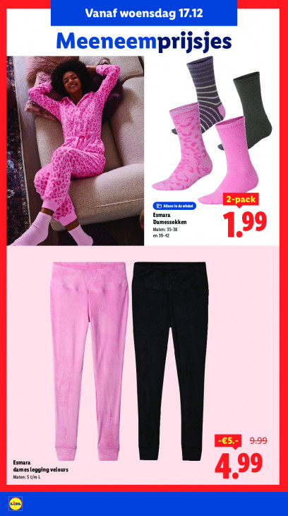 Deze tekst wordt automatisch gegenereerd, dus deze kan fouten bevatten.e jsjes ne neempri LA Z DIN Esmara Maten: 35-38 Damessokken en 39-42 Esmara dames legging velours Maten: S t/m L