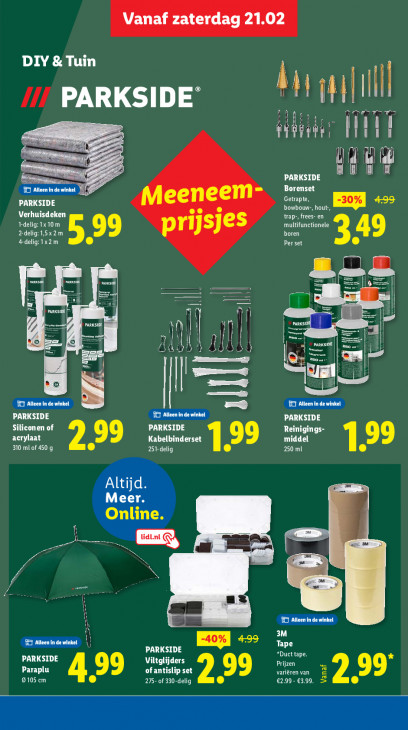 Deze tekst wordt automatisch gegenereerd, dus deze kan fouten bevatten.RER EE DIY & Tuin ES ERA Be NN a EE a Borenset PARKSIDE CET PARKSIDE bowbouw-, hout-, EEA + Verhuisdeken Re en LT 2delig:1,5x2m 99 multifunctionele boren LE ETETAr EN LE a = — — = üs TE | Dl) Kd u | 4) 1 I id ill \ | | SE | pe © EU +" PARKSIDE PARKSIDE Siliconen of PARKSIDE Reinigings- acrylaat 99 Kabelbinderset middel 99 EEE BEK 129 PU haan Bu A 3M ÉLUS LT A Tape PARKSIDE Lo DIT PARKSIDE Viltglijders CUP 9105 cm Paraplu Er of antislip set variëren van CRETE B 275- of 330-delig 299 299
