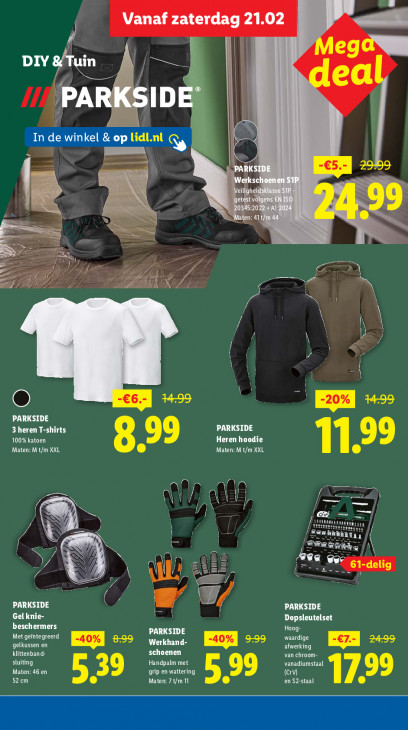 Deze tekst wordt automatisch gegenereerd, dus deze kan fouten bevatten.Vanaf hen 21.02 CL ah ned I ) PA € SID N 1.063 zes. ELS I jeilighi jetest vi N 711} PAC D = Es D Z F4 74 + À ) =. Ka» PARKSIDE 3 heren T-shirts PARKSIDE 100% katoen Heren hoodie Maten: M t/m XXL CE Maten: M t/m XXL 11.99 Aa Su. à IE D ep 4‘ 2. 7; M, = A SR’ ey Ar 1 ) 1 61-delig Je SO) À PARKSIDE PARKSIDE TT « Dopsleutelset beschermers PARKSIDE Der Met geintegreerd ET gelkussen en ET > Werkhand- EI >= tur) en klittenband- schoenen van chroom- sluiting Handpalm met vanadiumstaal Maten: 46 en grip en wattering (Cr! LE 52cm EL [een 5.99 CURYAECTE L