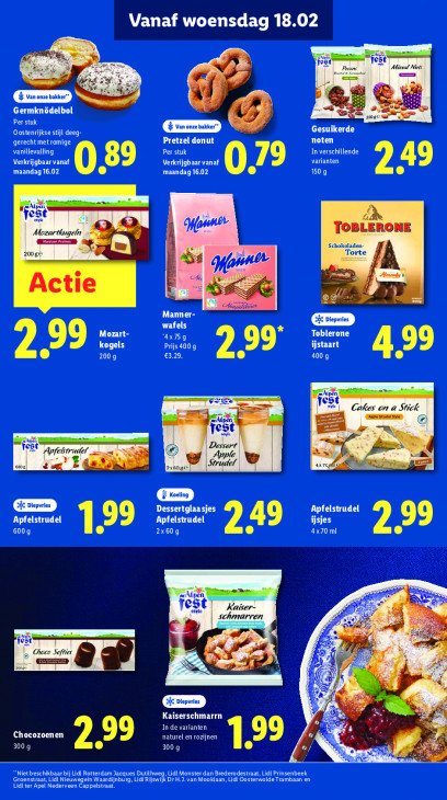 Deze tekst wordt automatisch gegenereerd, dus deze kan fouten bevatten.Vanaf woensdag 18.02 = = eser TTT & ie Prcans ‘Miedl Nats à 7. = = LL x Hr 5 Germknödelbol A se 250€ Far Per stuk Oostenrijkse stij deeg es * Gesuikerde PRC Ha rT3 Pretzel donut noten In verschillende vanillevulling Per stuk Verkrijgbaar vanaf 89 Verkrijgbaar vanaf varianten maandag 16.02 maandag 16.02 XL) 150 g LE a S Mozartkugeln 2 (es TOBLERONE Schokoladen- 2008€ u 'orte 4 (anne N A Ea Actie ke S £ cs Manner- wafels puri LC LUS LT 99 kogels EU ijstaart 99 €3.29. 299 LUE 4009 an = == — es Se Cakes on a Stick Aie Scale 5 Bi, RE = fre ve AE A Dessert nn * = Apfeßerudel 2 ( © BEN Apple. ‚os bxsogs gs udel | 4x7cg «Di les aD CE Apfelstrudel Apfelstrudel Apfelstrudel ijsjes 199 LE 4x70 ml EL 600g AT Alpen est! f ee Kaiser- Bu > schmarren Fe FE Ë 5 ® = 5 beid est 5 \ & , Coco Saft gr ER 5 x 7 sa “a eN À ’ Kaiserschmarrn In de varianten 0 Chocozoenen OD naturel en rozijnen 3009 299 3009 1.99 „id er ni Niet beschikbaar Lidl Rotterdam Jacques Dutilhw Lidl Monster dan Brederodestraat, Lidl Prinsenbeek Groenstraat, Lidl MNT INA jswijK Dr H.J.van Mooklaan, Lidl Oosterwolde Trambaan en Lidl ter Apel Nederveen Cappelstraat.