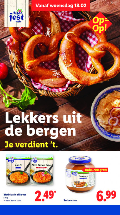 Deze tekst wordt automatisch gegenereerd, dus deze kan fouten bevatten.Pt, Vanaf woensdag 18.02 DL 7 IN A, 7; x x k ee ti Le À. x N. Ke 1. à Eee N KK LITE 1 e Le Lekkers uit NG de bergen Kein | Rea Rösti Berner Style U 49° Bockworsten 99