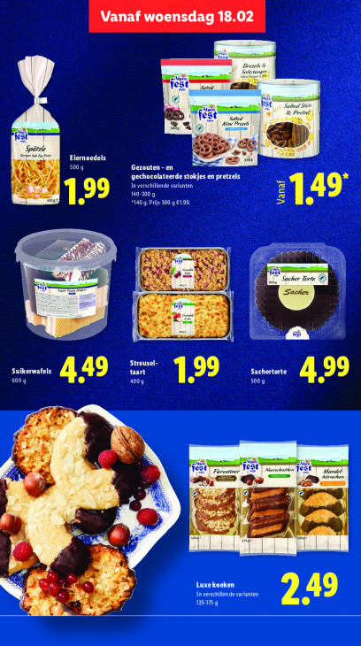 Deze tekst wordt automatisch gegenereerd, dus deze kan fouten bevatten.Vanaf woensdag 18.02 es jack Brezelh Salestang NE est a Late dt Ist “30 Salted $ tre = Test led Mi PE — 1006 2 je st es ks CDS Wes Eiernoedels 440 SH, 5009 Gezouten - en D gechocolateerde stokjes en pretzels In verschillende varianten 140-300 g Er SS 99 +140 g. Prijs 300 g €1.99. u a ee ER UT ai er cher Torte | EN a iz TR Sacher La RE | > > EG Suikerwafels LEE LE ECTS 6009 449 499 Ku) 500 g Ve } u fe — fe jest Florentiner nitten T8° Mande À schen / Sj a | Le LEN = el af F4 TG In verschillende varianten 49 125-175 g t
