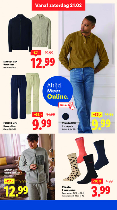 Deze tekst wordt automatisch gegenereerd, dus deze kan fouten bevatten.ESMARA MEN Heren vest 99 Maten: M t/m XL HO | Online. KE ® ESMARA MEN ESMARA MEN Heren chino 99 Heren polo LE) Maten: M t/m XL Maten: M t/m XXL 4 \ en hi 1 | » (= » Here: LLC e DETTE 7 OR en) 2 ESMARA AA 7 paar sokken Damesmaten: 35-38 en 39-42 99 Herenmaten: 39-42 en 43-46