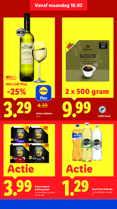 Deze tekst wordt automatisch gegenereerd, dus deze kan fouten bevatten.Vanaf maandag 16.02 æ— © & ? Grüner Veltliner dl 0,751 Koffie Goud pe, 5 \ Douwe Egberts koffiecapsules Royal Club of Rivella In verschillende varianten In verschillende varianten ETV 1