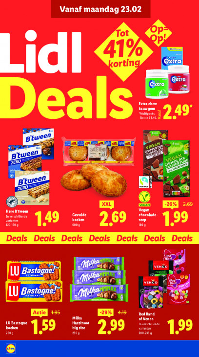 Deze tekst wordt automatisch gegenereerd, dus deze kan fouten bevatten.Vanaf maandag 23.02 (SPACE Ke] enge ME BRENT" kauwgom *Multipacks. Bottle €3.49. a Be a ce. ad JAN 73 N © GEN DES en N (Ac ns 0 N‘ a DE Y. sen d VEGAN Hero B'tween Vegan In verschillende Gevulde chocolade- varianten koeken LC) 120-150 g 600g 180 9 Ml VENCO LU Zu ch) LU rd 43 SE 7, Red Band Milka of Venco Hazelnoot LU Bastogne In verschillende koeken big size varianten CN Tr 200-235 9 Ea